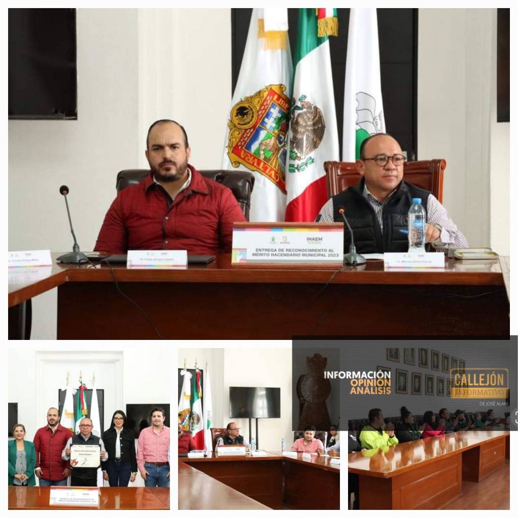 Por el centro2: El Instituto Hacendario del Estado de México entregó al alcalde de Zinacantepec, Manuel Vilchis Viveros, el Reconocimiento al Esfuerzo Hacendario Municipal “Jose María Morelos y Pavón”.