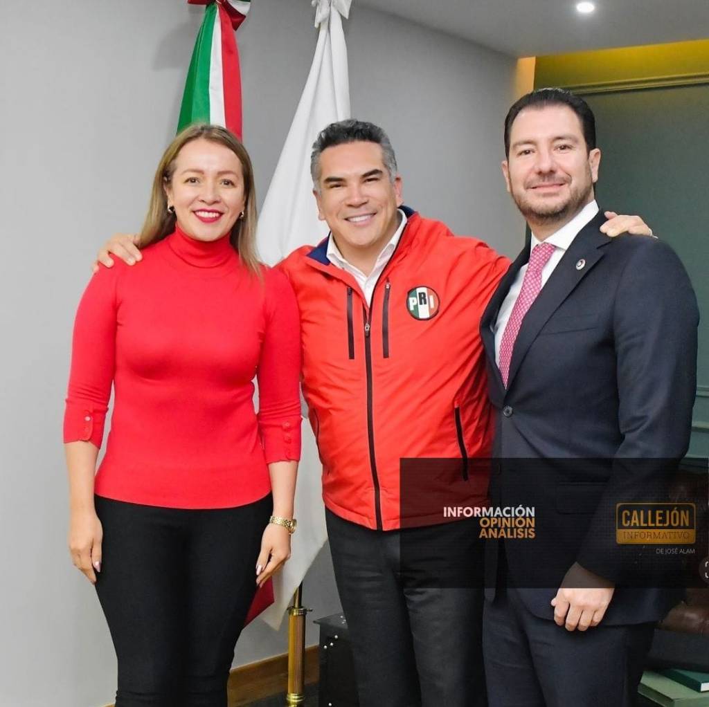 Por el centro: El dirigente nacional del PRI, Alejandro Moreno Cárdenas, recibió a Elías Rescala Jiménez, jefe de la bancada en la entidad y a Elida Castelán Mondragón quien recientemente dejó al PRD y se sumó al Grupo Parlamentario priista en la LXI Legislatura Local.