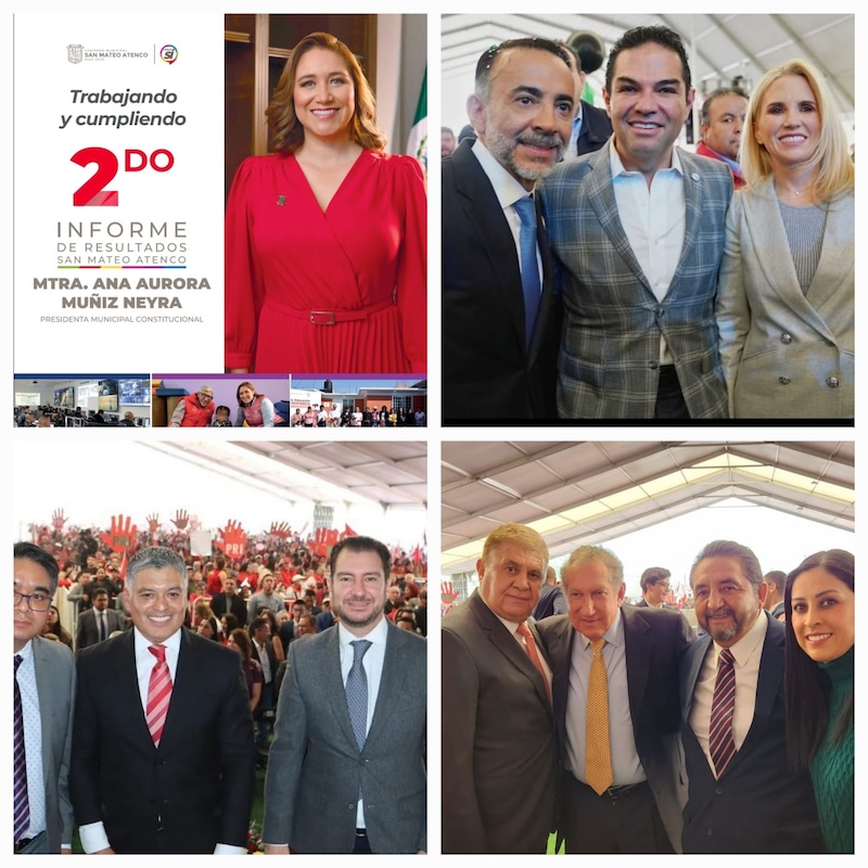 Esta mañana continúan los informes; Ana Muñiz Neyra rendirá su Segundo en San Mateo Atenco, quien destacará la creación del Centro de Mando Municipal C4, la ampliación del sistema de videovigilancia con 324 cámaras de alta tecnología; el centro de rehabilitación e integración social para atender a personas con discapacidad, así como la inversión de 164 millones de pesos en obras públicas; 64 en rehabilitación de 28 escuelas.