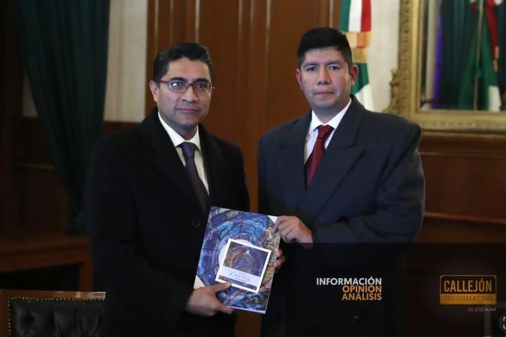 Sandoval González entregó el documento al representante personal de la Gobernadora, Delfina Gómez Álvarez, el Consejero Jurídico, Jesús George Zamora, así como a los integrantes del Cabildo.