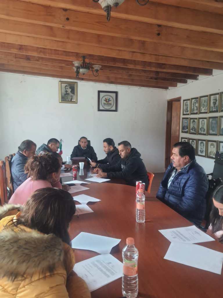 Por la izquierda: El cabildo de Texcaltitlán encabezado por Javier Lujano Huerta sesionó ayer en Palacio Municipal, con lo cual dejan ver que no es cierto que dichas autoridades estén ausentes.