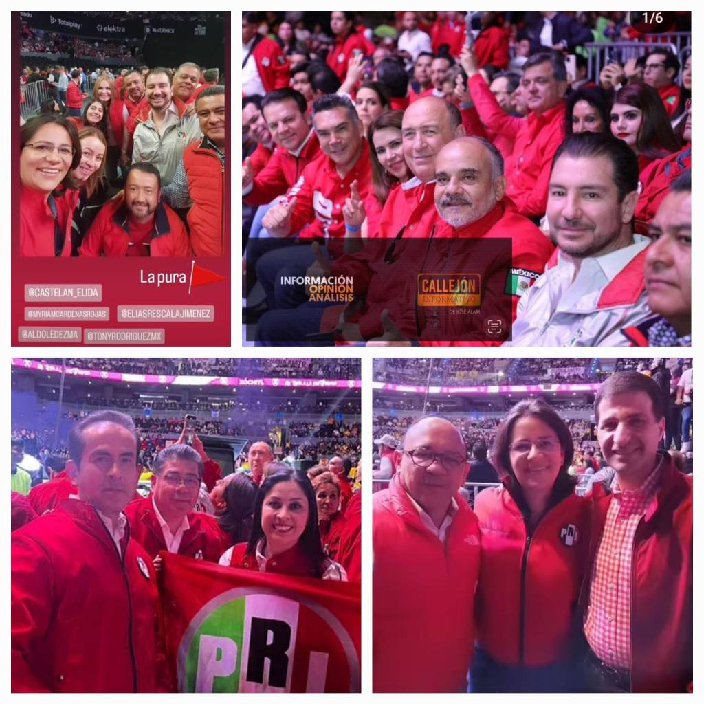 Por la derecha: Priistas y panistas mexiquenses acudieron al acto de cierre de precampaña de Xóchitl Gálvez Ruiz, en la Ciudad de México, entre ellos el coordinador nacional de diputados locales del CEN del PAN, Enrique Vargas del Villar; Anuar Azar Figueroa, dirigente estatal; Elías Rescala Jiménez, presidente de la Junta de Coordinación Política de la LXI Legislatura mexiquense; Miguel Sámano Peralta, coordinador de los diputados federales del Edomex en la Legislatura Federal.