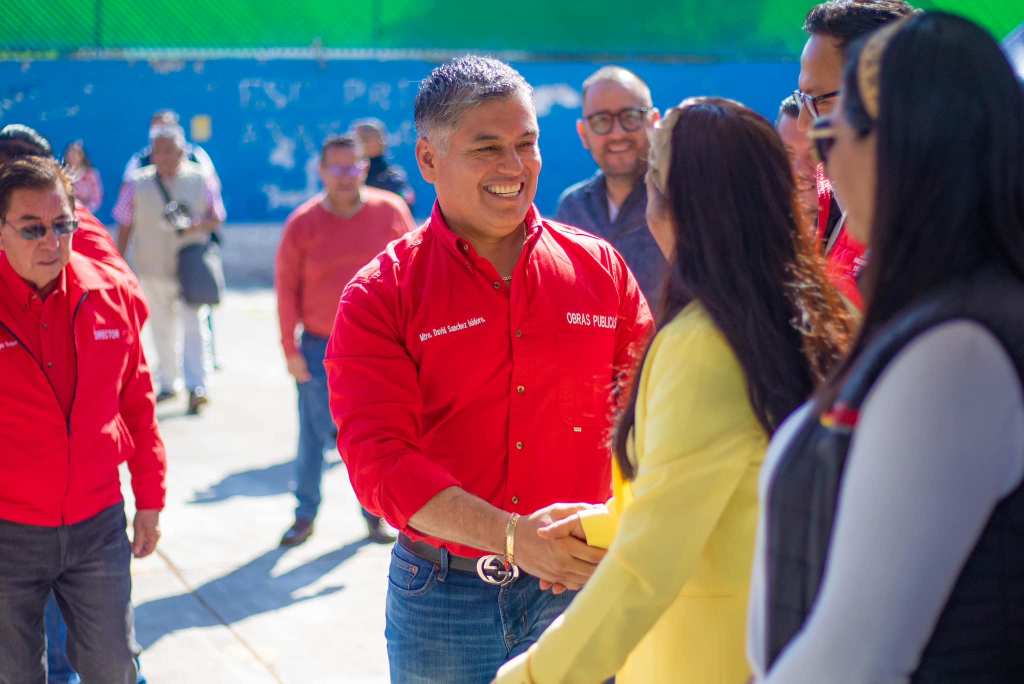 Por el centro: El presidente Municipal de Coacalco, David Sánchez Isidoro, continúa la entrega de arcotechos en las escuelas, un tema que le piden los padres de familia.