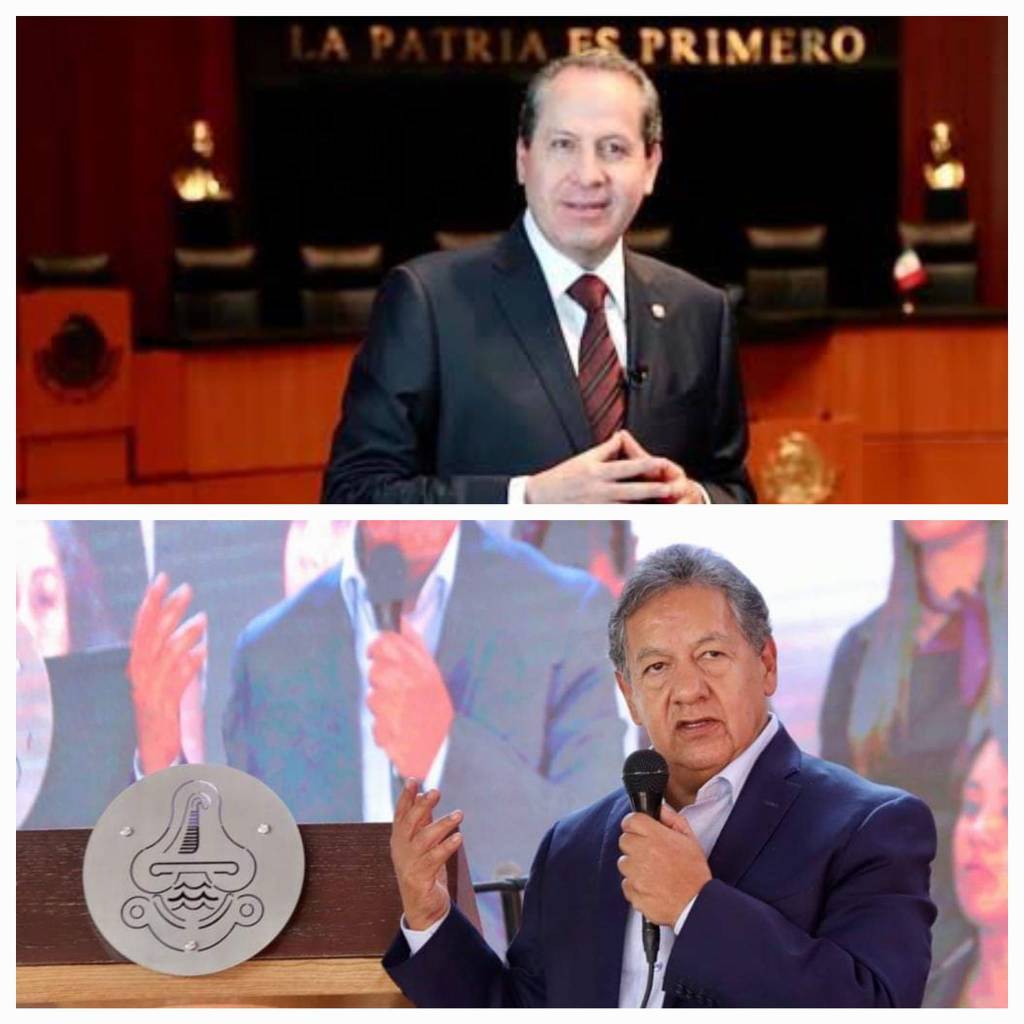 Por la izquierda: El senador de la República, Eruviel Ávila Villegas, coincidió con su compañero de escaño, Higinio Martínez Miranda, en que se viven tiempos de cerrar filas en torno a la doctora Claudia Sheinbaum Pardo, rumbo a la Presidencia de la República.