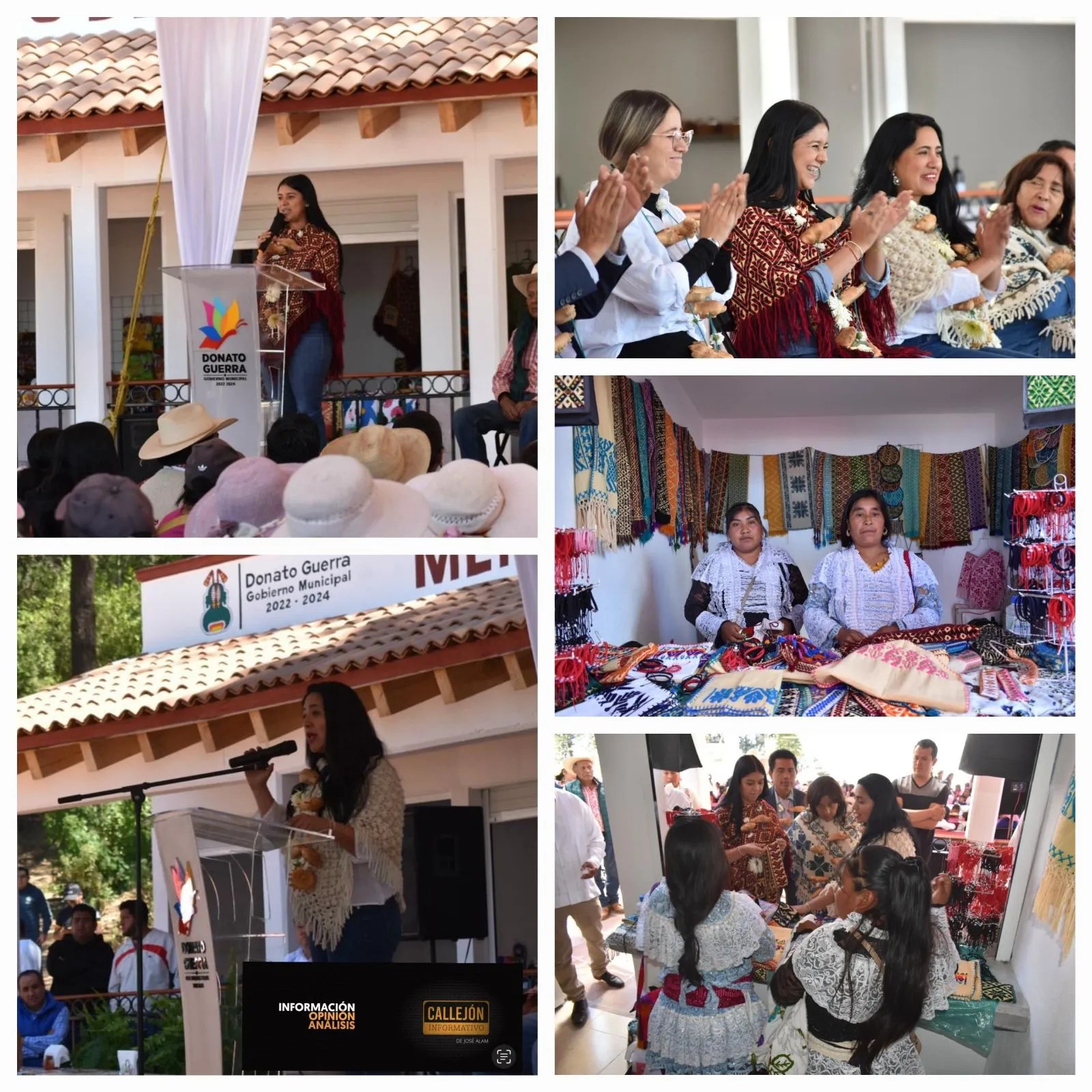 Por la izquierda: Atendiendo una deuda histórica con el Pueblo Mazahua, el Ayuntamiento de Donato Guerra encabezado por Carmen Albarrán Gabriel entregó las nuevas instalaciones del Mercado de Artesanías.