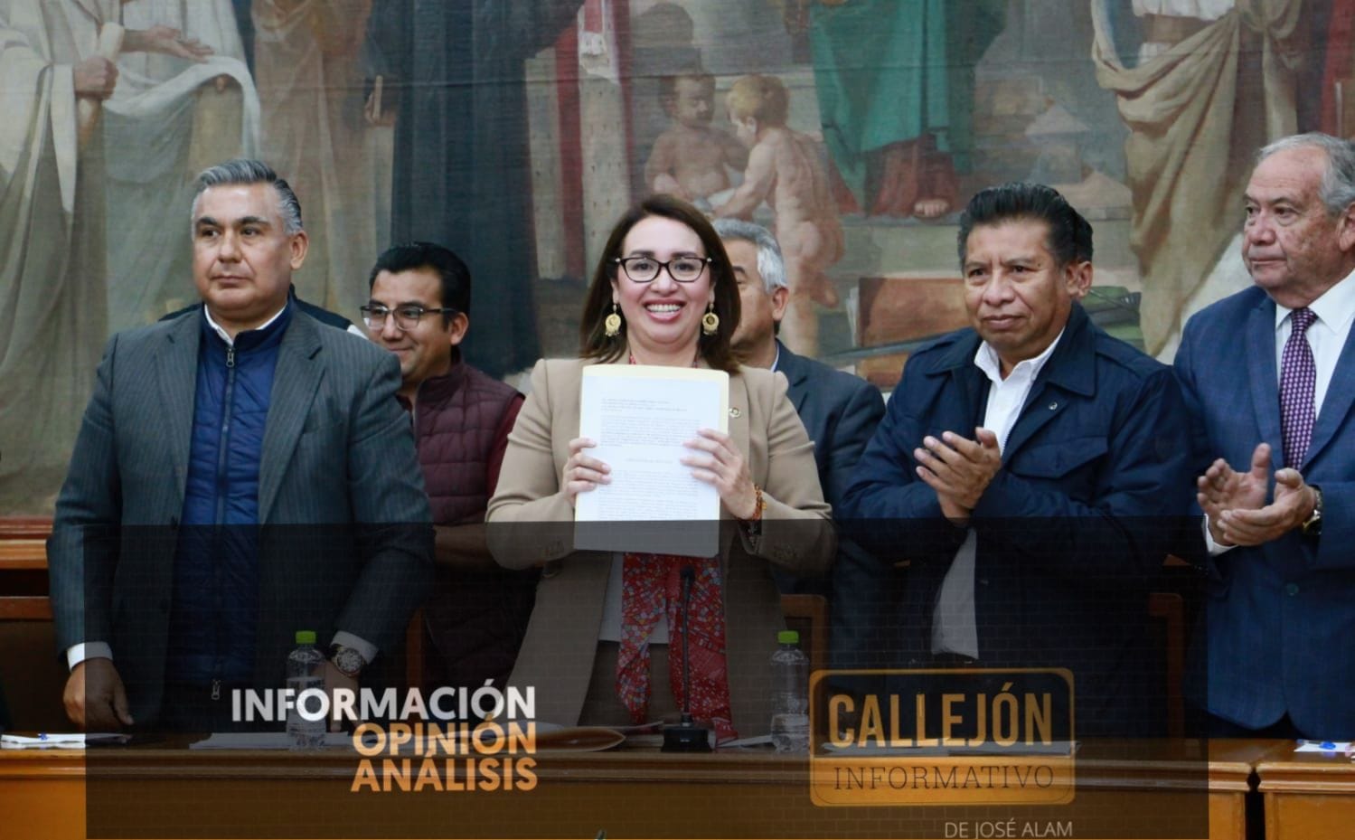 En el Salón Benito Juárez, donde se realizó una conferencia de prensa, en la que estuvo acompañada por Octavio Martínez Vargas, así como por las y los legisladores de Ecatepec, Faustino de la Cruz, Raúl Ponce, Camilo Murillo y la diputada federal, Guadalupe Román, además de ex regidores y ex diputados locales y federales del municipio, así como líderes de izquierda.