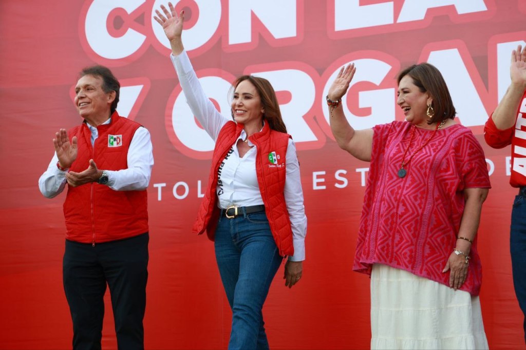 Por el centro: El priismo mexiquense recibió a Xóchitl Gálvez Ruiz, la candidata presidencial de la coalición PRI-PAN-PRD, en la Plaza de la Unidad del Comité Directivo Estatal (CDE). En el acto estuvo acompañada por Alejandro Moreno Cárdenas, el presidente del CEN, por liderazgos importantes como Cristina Ruiz Sandoval, dirigente nacional de la CNOP, la dirigencia y la clase política mexiquense.