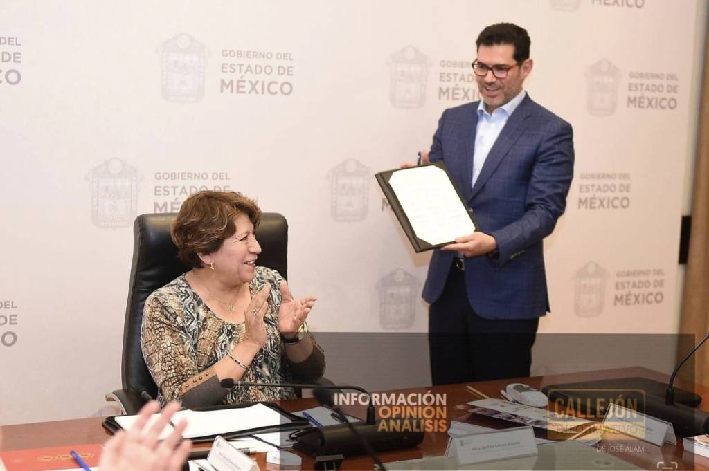 Por la izquierda: La gobernadora mexiquense, Delfina Gómez Álvarez, firmó el decreto para la publicación del primer Plan de Desarrollo 2023-2029, de un Gobierno con una ideología distinta a la que siempre estuvo al frente de la administración.