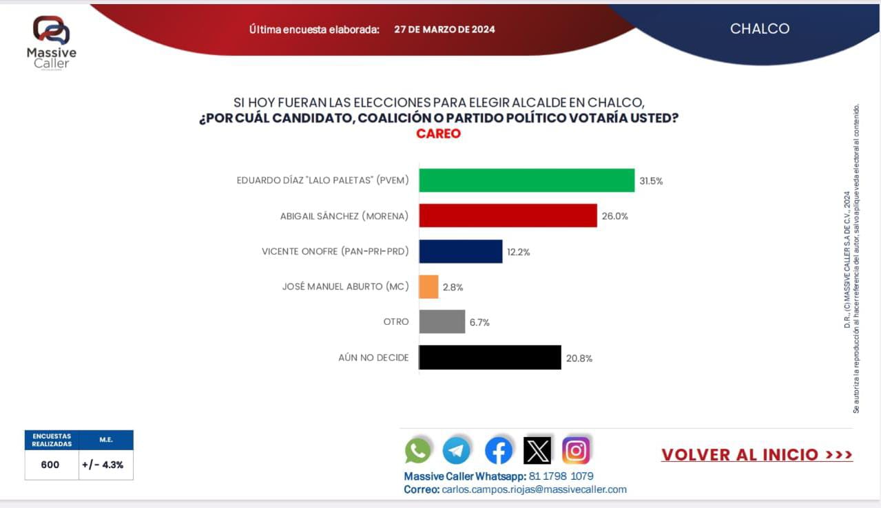 Por ejemplo la encuestadora Massive Caller establece que Eduardo Díaz, mejor conocido como “Lalo Paletas”, es la alternativa con mas alta rentabilidad electoral, respecto de otras opciones de cara a a la definición de candidaturas.