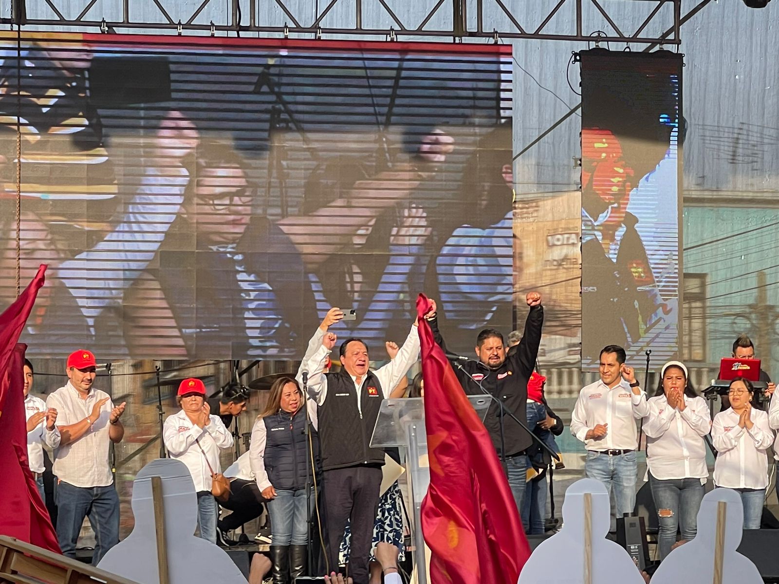 Por la izquierda: Jonathan Morales cerró campaña en Tenango del Valle, con el respaldo de los liderazgos del PT, como el caso de Oscar González Yañez, quienes están trabajando fuerte para consolidar dicho proyecto.