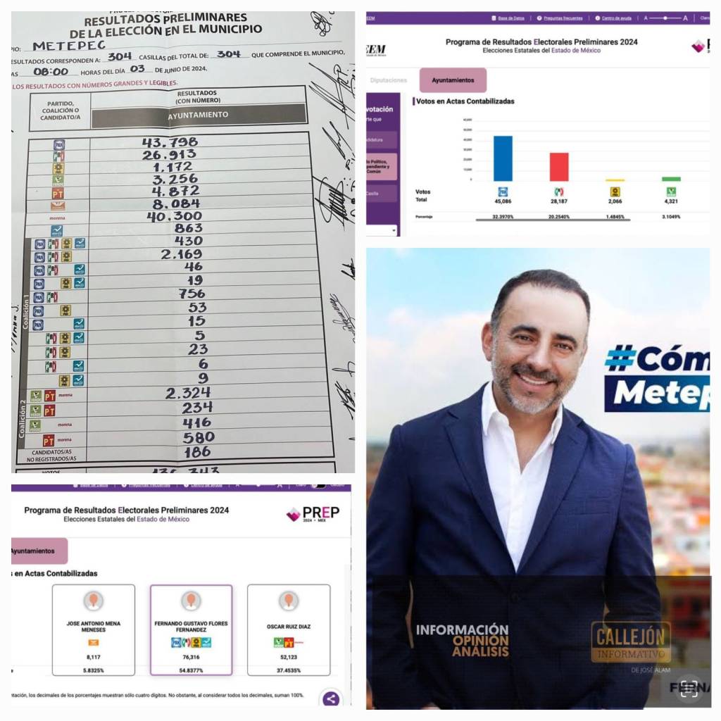 Por la derecha: Fernando Flores Fernández se convertirá en presidente Municipal de Metepec por segunda ocasión, con una diferencia, alta, pero habría que poner atención en los votos por partido.