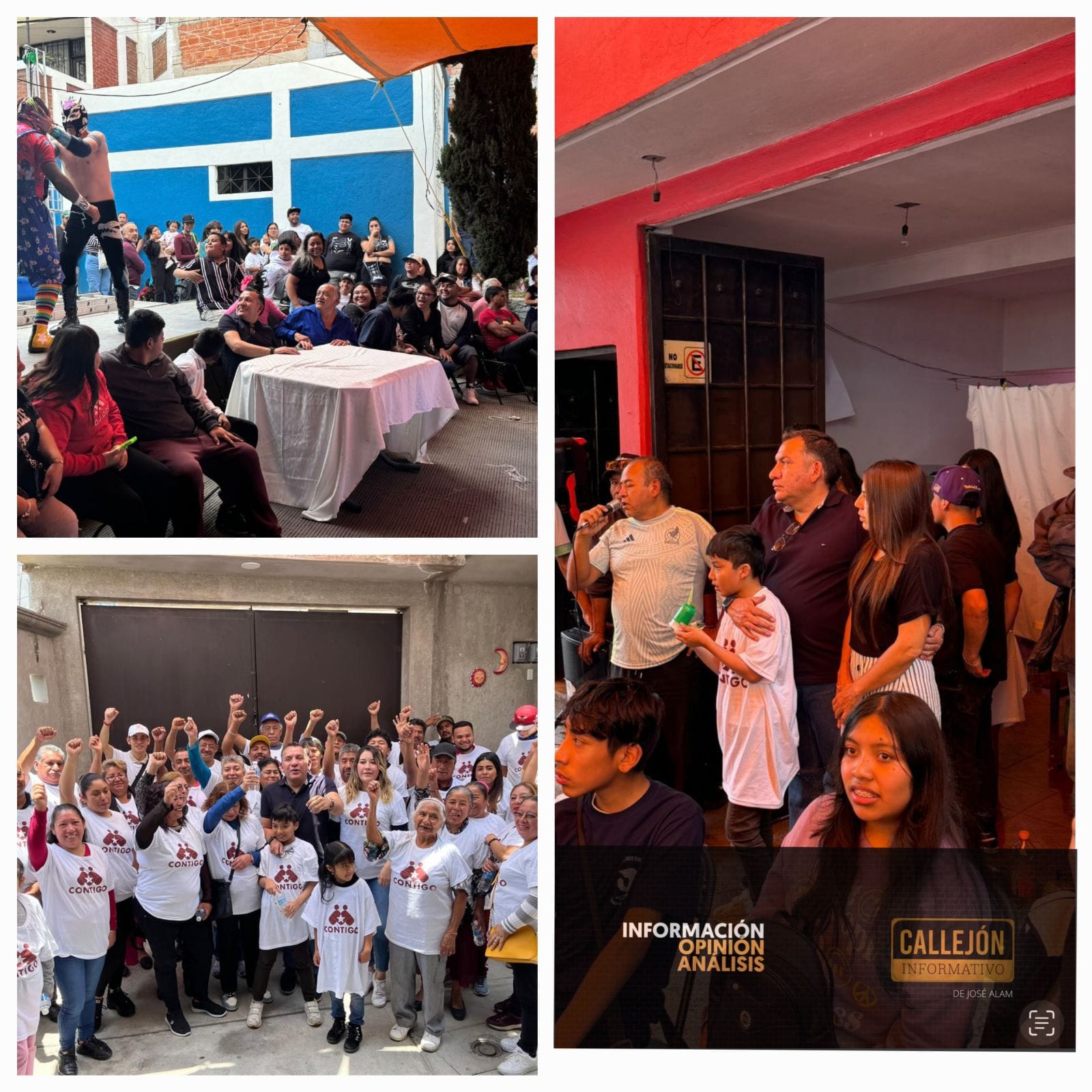 El domingo encabezó reuniones de trabajo con vecinos de las Huertas 1era y acompañó a las fiestas patronales de La Mancha 1, reiterando su compromiso de cercanía y resultados. Mauricio Aguirre fue recibido por líderes sociales y autoridades auxiliares de Naucalpan.