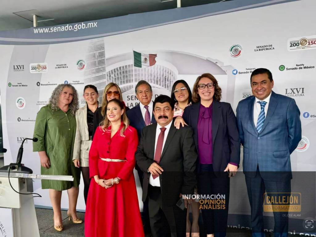 Por la izquierda: Diversos políticos mexiquenses, entre ellos Miroslava Carrillo, auditora del Órgano Superior de Fiscalización del Edomex, acompañaron a Higinio Martínez Miranda, quien este Jueves rindió protesta como miembro del Senado de la República.