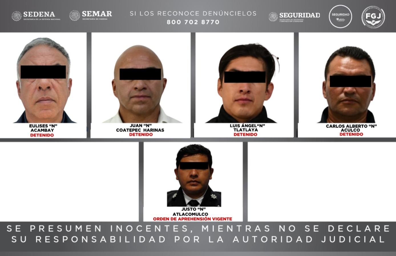 Por la izquierda2: La Fiscalía General de Justicia del Estado de México ejercitó acción penal en contra de tres comisarios municipales de Seguridad, -sumando cinco- por su probable participación en la desaparición de su homólogo de Temascalcingo.