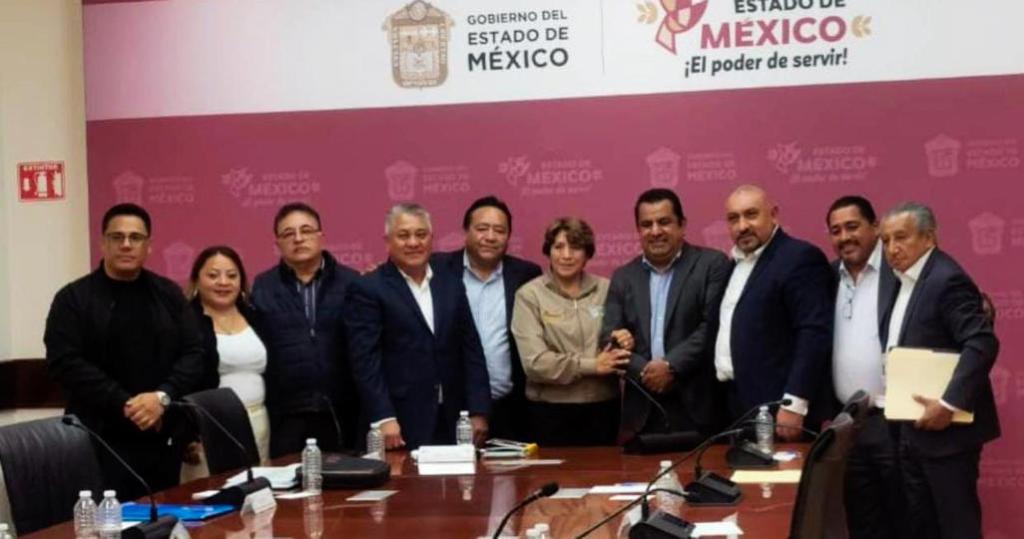 Por la izquierda: La gobernadora Delfina Gómez Álvarez se reunió en vísperas de su Primer Informe de Gobierno con lideres transportistas del estado de México, entre ellos Jafet Sainz, quien representa a ACME, un personaje con liderazgo y trabajo social en la entidad.