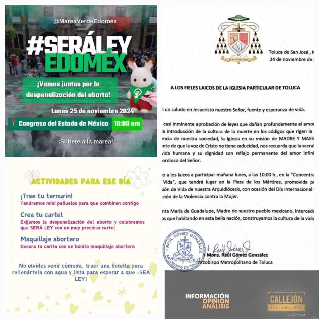Este 25 de Noviembre podría convertirse en un día histórico para el estado de México, porque en el marco del Día Internacional de la no Violencia contra las Mujeres, se prevé la aprobación de instrumentos legislativos que darán forma a la despenalización del aborto, en un escenario de posibles manifestaciones públicas, tanto de sectores a favor, como críticos, defensores de la familia y hasta religiosos.