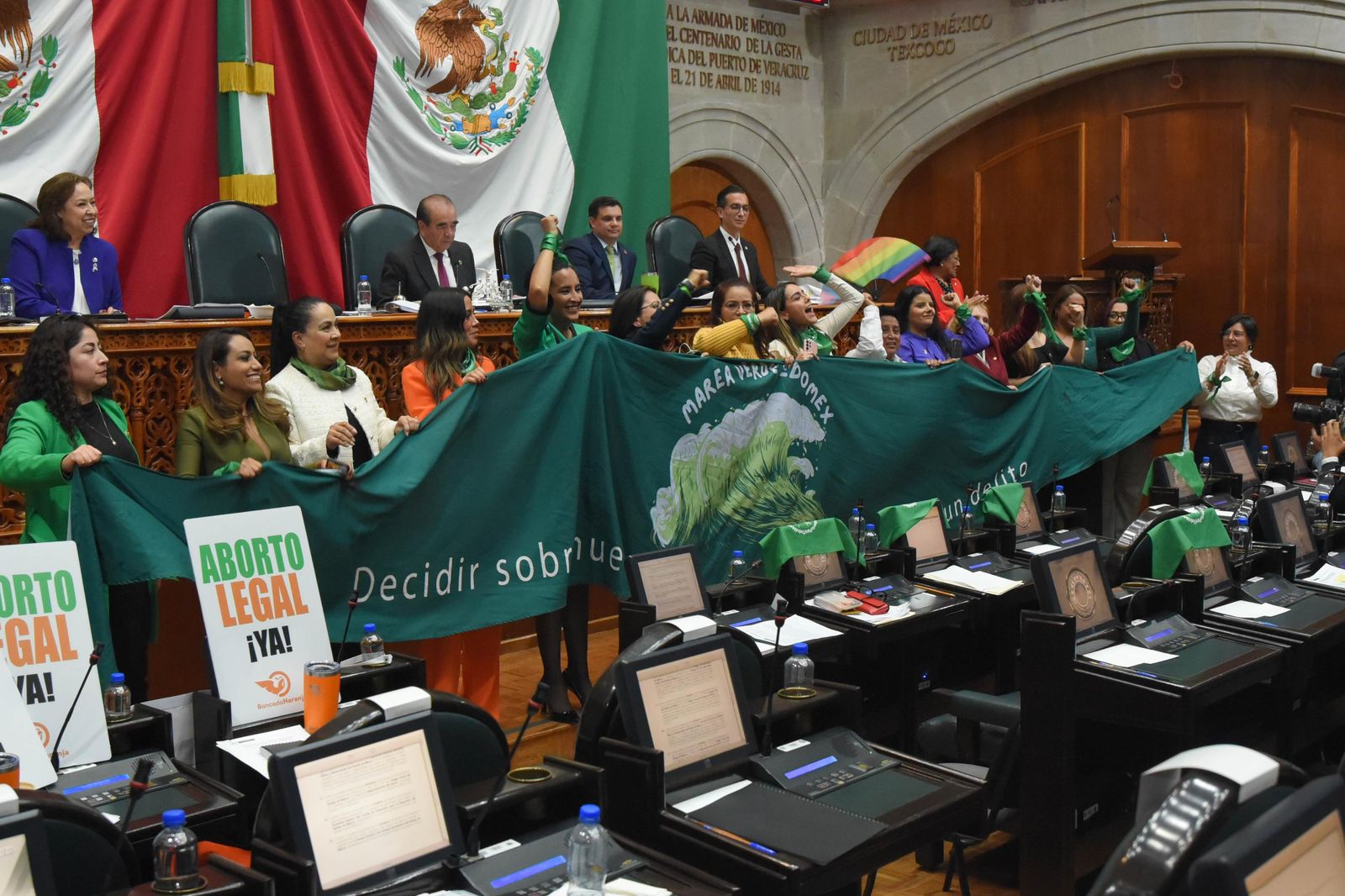 El centenar de mujeres ataviadas con distintivos de color verde se abrazaron unas a otras, habían esperando mucho tiempo, cinco legislaturas de acuerdo con la diputada de morena, Zaira Cedillo Silva.