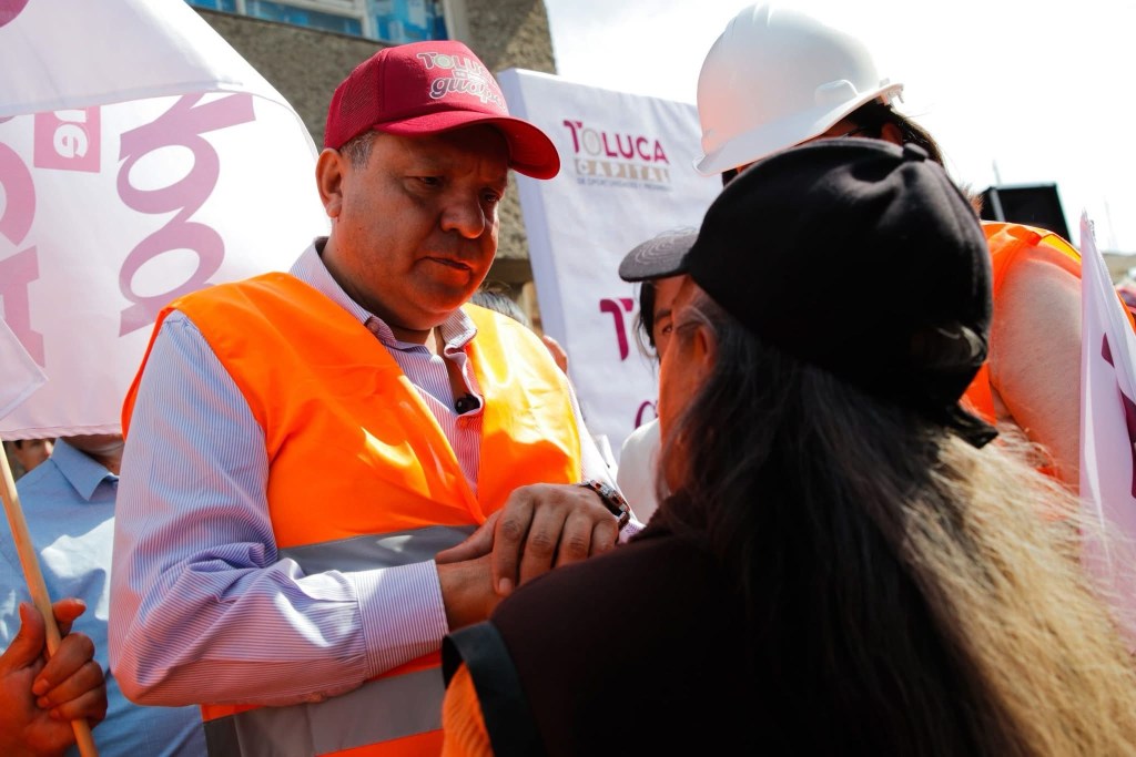 Por la izquierda: El presidente Municipal de Toluca, Ricardo Moreno Bastida, puso en marcha el programa «Toluca se pone guapa» que pretende abonar al mejoramiento de las condiciones en que se encuentra la ciudad, por ejemplo con bacheo de calles.