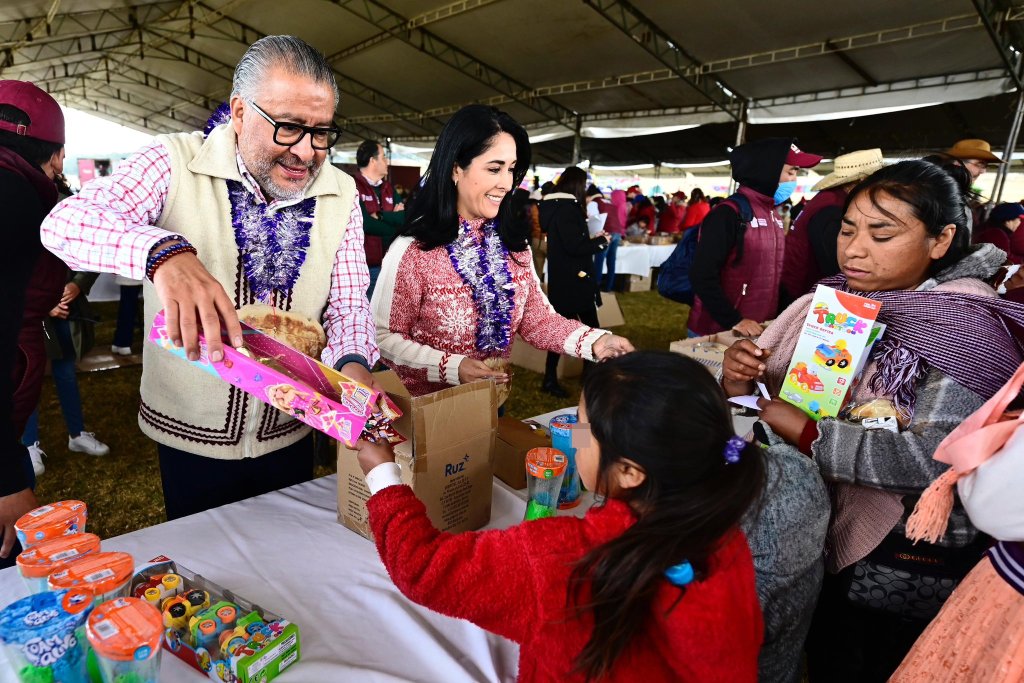 Por la izquierda: El secretario General de Gobierno, Horacio Duarte Olivares, encabezó un festejo masivo de “Reyes Magos” en San José del Rincón, allá en la zona norte del Edomex, en cuyo acto estuvo acompañado por Karina Labastida Sotelo, la directora General del Sistema DIFEM.