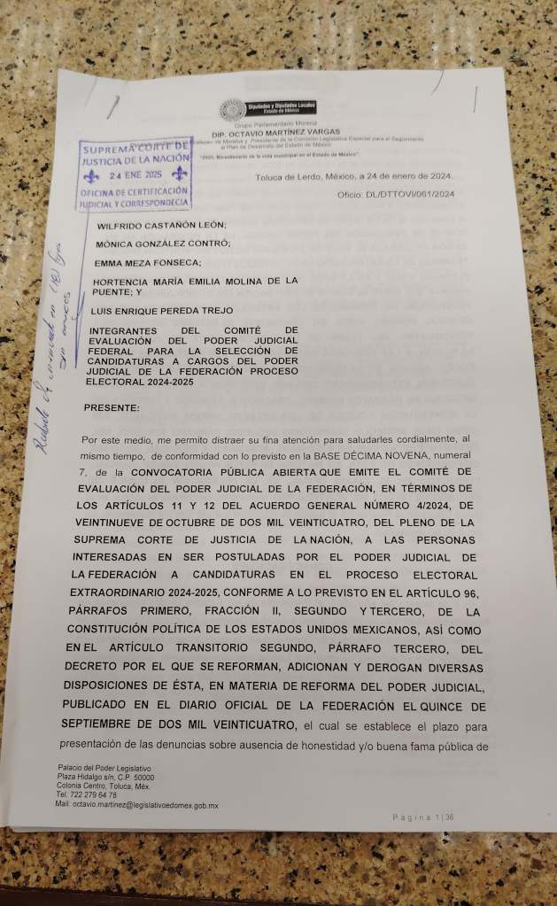 Por la izquierda2: El legislador local de morena, Octavio Martínez Vargas, solicitó formalmente al Comité de Evaluación del Poder Legislativo Federal no considerar como idóneo el registro de Ricardo Sodi Cuéllar como candidato a Ministro de la Suprema Corte de Justicia de la Nación, ya que no goza de buena fama pública, tampoco tiene buena reputación, además detalló qué posibles irregularidades presentó en su pasado ejercicio como presidente del Poder Judicial del Edomex.