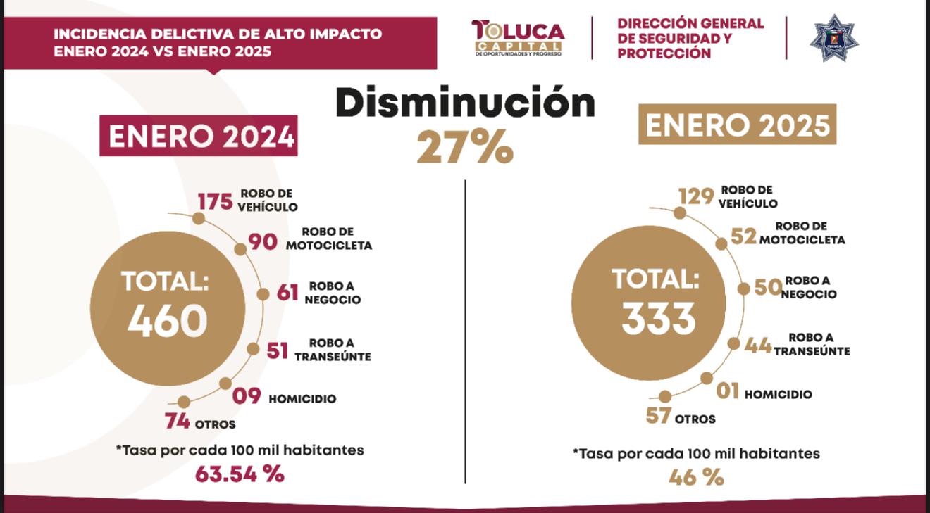 - Incidencia delictiva de alto impacto bajó un 27 por ciento, en Toluca
