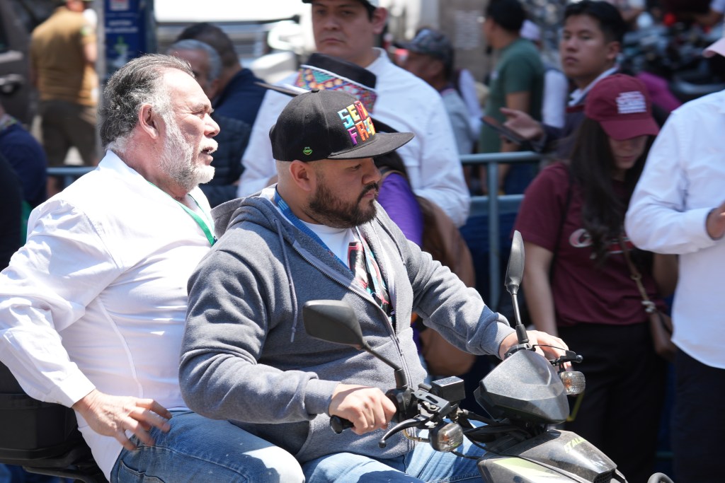 Contexto. Al llegar al Zócalo, Sheinbaum saludó a diversas personas, entre ellas una fila donde se encontraba su familia, mientras esto ocurría y tomando en cuenta que a través del sonido ya se había anunciado la presencia de la mandataria, justo al lado se tomaban fotografías otros morenitas con Andrés Manuel López Beltrán, quien es el secretario de Organización del CEN de morena.