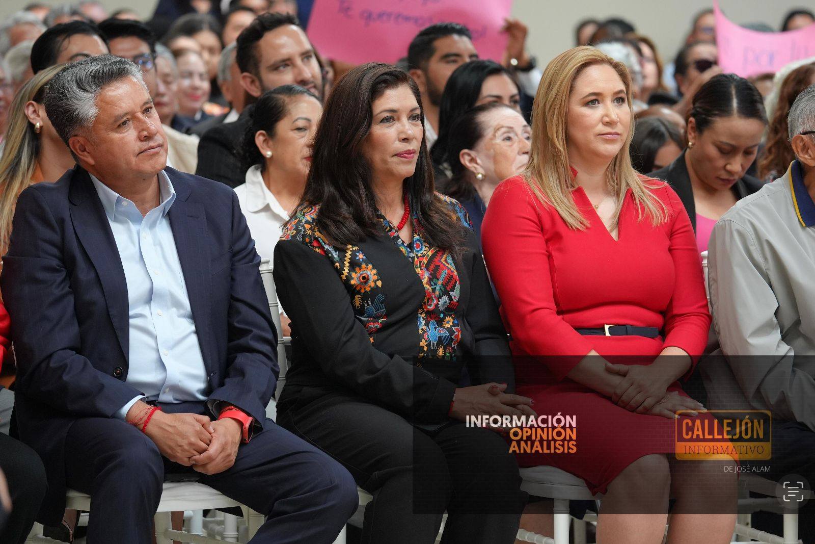 Saray Benítez fue cobijada por legisladores afines a la Cuarta Transformación; del PRI, así como gente del PRD y diversos invitados, entre ellos presidentes y presidentas Municipales de municipios vecinos.