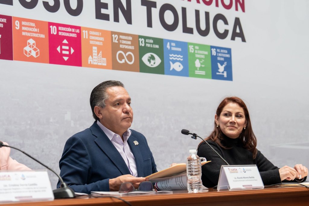 Por la izquierda: El presidente Municipal de Toluca, Ricardo Moreno Bastida, encabezó la instalación del Consejo Municipal para impulsar la Agenda 2030 en Toluca, capital del estado de México.