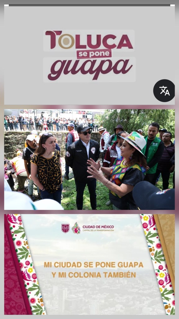 Por la izquierda: En el gobierno municipal de Toluca, la capital del estado de México, se percibe alegría luego de que la Jefa de Gobierno de la CDMX, Clara Brugada Molina puso en marcha el Programa «Mi Ciudad se Pone Guapa». Y es que se trata del programa emblema del Gobierno de Ricardo Moreno Bastida, en Toluca, «Toluca se Pone Guapa”. Es decir, dejan ver que trasciende su eje rector.