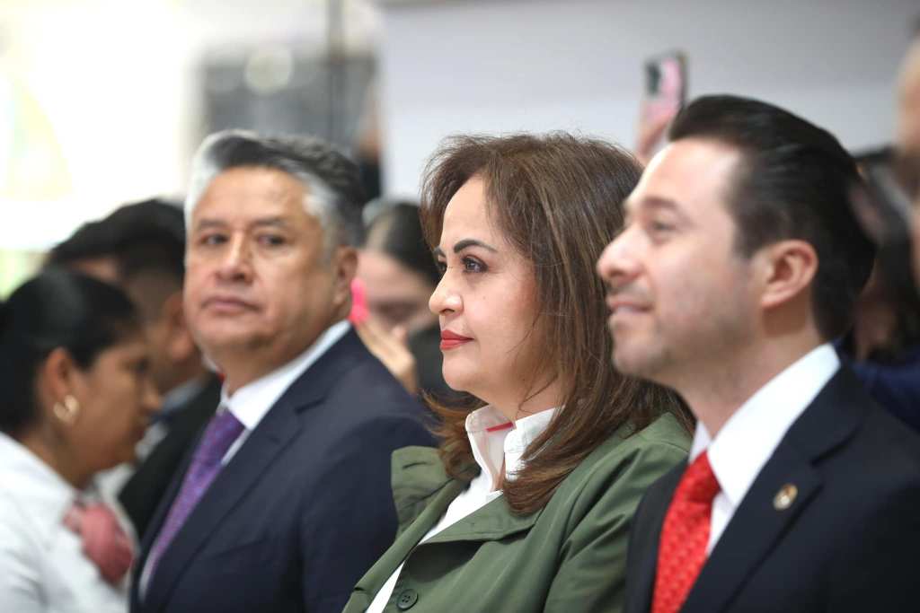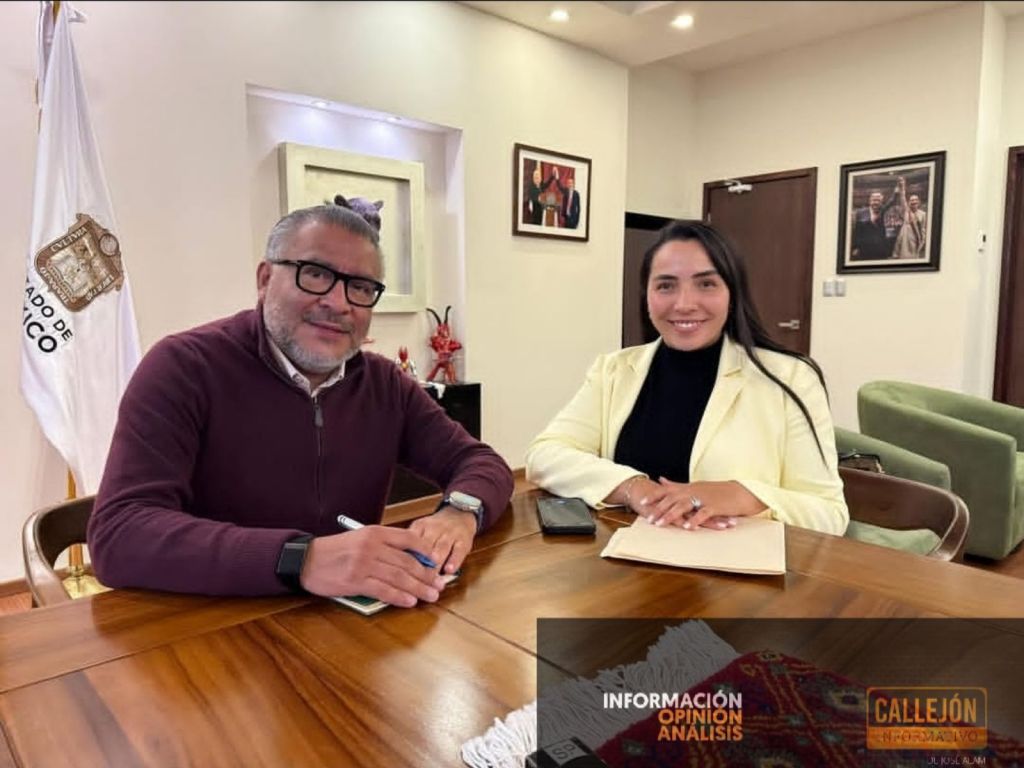 Por la izquierda: La legisladora local de morena, Arleth Grimaldo, reconoció el respaldo de Horacio Duarte Olivares secretario General de Gobierno, con quien dijo compartir el camino de transformación con su liderazgo en #Edoméx
