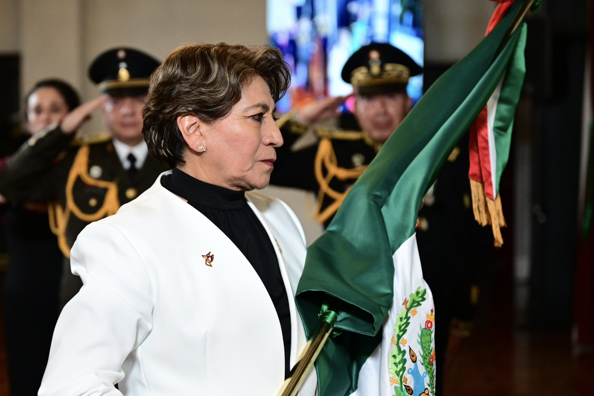 En la noche del 15 de Septiembre estuvieron presentes los y las integrantes del gabinete en Palacio de Gobierno, incluyendo al Fiscal General de Justicia, José Luis Cervantes, y el presidente Municipal de Toluca, Ricardo Moreno Bastida, quien junto a miembros del cabildo trasladaron la bandera de Palacio Municipal al de Gobierno, para entregarlo a la gobernadora.