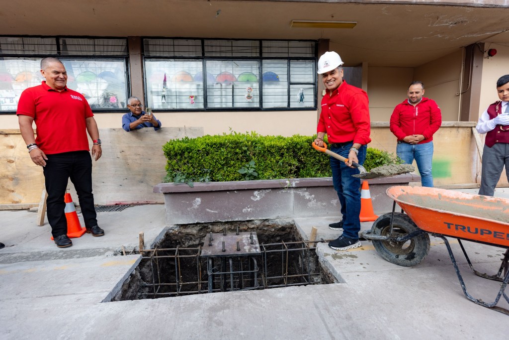 Por el centro: El presidente Municipal de Coacalco, David Sánchez Isidoro, puso en marcha la construcción del arcotecho en la Primaria José María Morelos y Pavón, una obra que beneficia a los dos turnos. Señaló que suman 100 arcotechos en escuelas de Coacalco, durante los últimos cuatro años, mismo que ayudará a realizar actividades escolares en favor de los y las estudiantes.