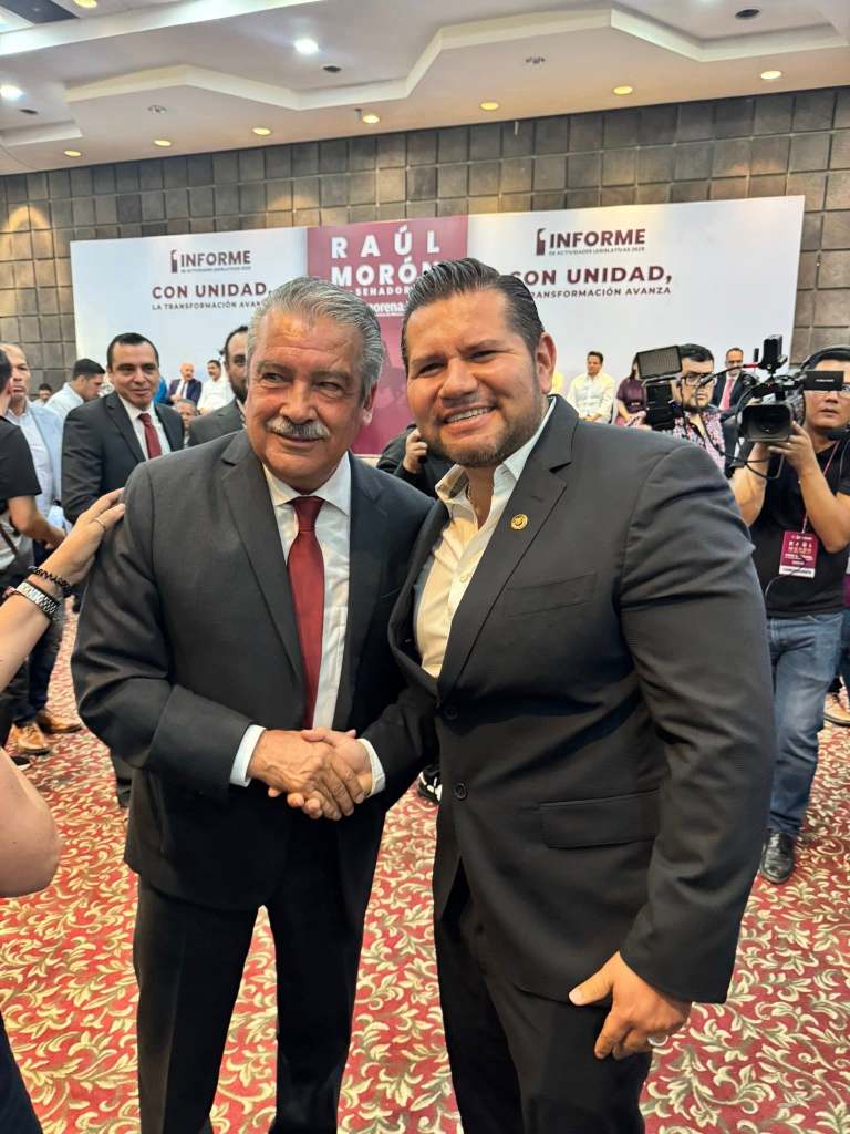 Por la izquierda2: El diputado local de morena, Samuel Ríos Moreno, asistió al informe del senador de la República por Michoacán, Raúl Morón Orozco, quien seguramente será el candidato a gobernador.