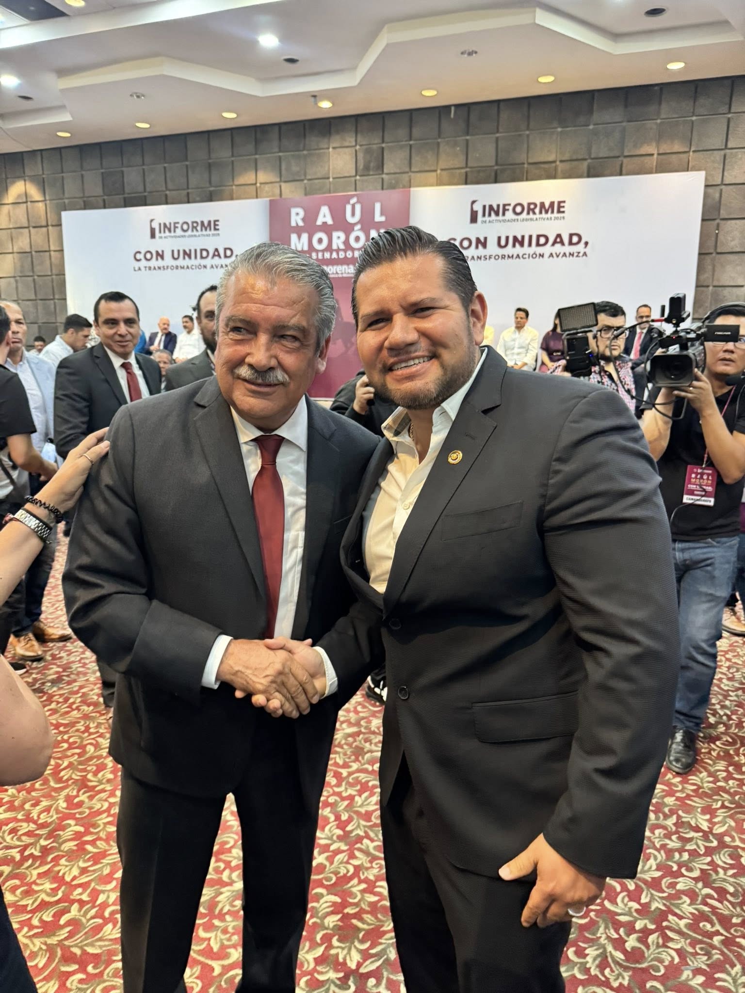 Por la izquierda2: El diputado local de morena, Samuel Ríos Moreno, asistió al informe del senador de la República por Michoacán, Raúl Morón Orozco, quien seguramente será el candidato a gobernador.