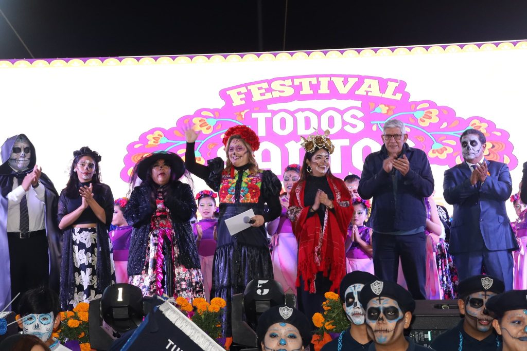 Por el centro: La presidenta Municipal de San Mateo Atenco, Ana Muñiz Neyra, inauguró la 10ª edición del Festival Todos Santos, cuyo objetivo ha sido reunir a las familia, con la finalidad de compartir emociones y de disfrutar unidos de las tradiciones mexicanas.