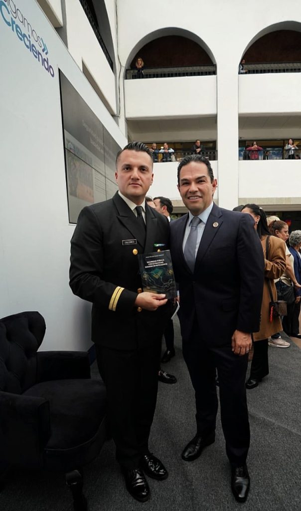 Por la derecha: El senador mexiquense Enrique Vargas del Villar acompañó al Comisario de Seguridad Pública de Atizapán de Zaragoza, Teniente Fabián Gómez, en la presentación del libro “Seguridad pública con estrategias basadas en inteligencia”.