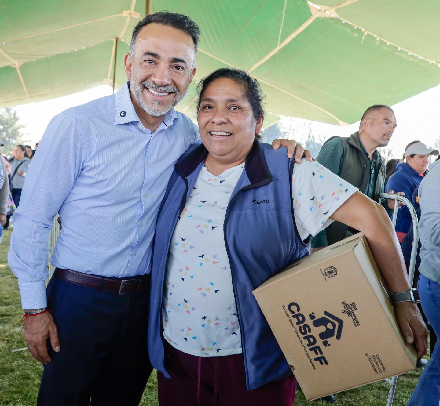 Por la derecha: El presidente Municipal de Metepec, Fernando Flores Fernández, entregó mas de tres mil Canastas Alimentarias CASAFF a las y los vecinos de San Gaspar, San Sebastián, San Lucas y Álvaro Obregón.