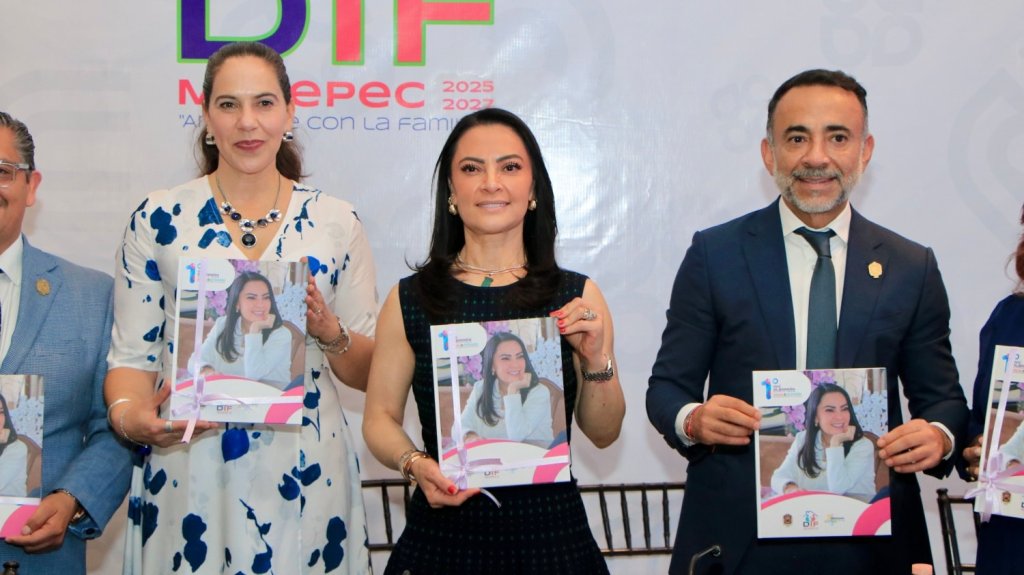 Por la derecha: La presidenta honoraria del DIF Metepec, Iraí Albarrán, rindió su Primer Informe de resultados al frente del organismo, acto al que acudió el presidente Municipal, Fernando Flores Fernández. En Toluca y Zinacantepec, también informaron acciones en sus respectivos organismos, Rocío Pegueros y Jessica Ríos.