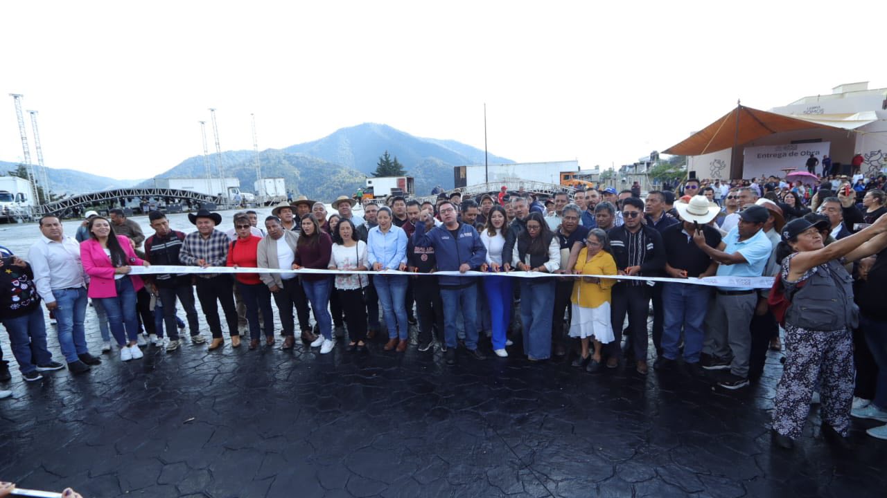 Por el centro: El presidente Municipal de Lerma, Miguel Ángel Ramírez Ponce, entregó la nueva Plaza Cívica de la Capilla de Huitzizilapan, sitio emblemático para la comunidad.
